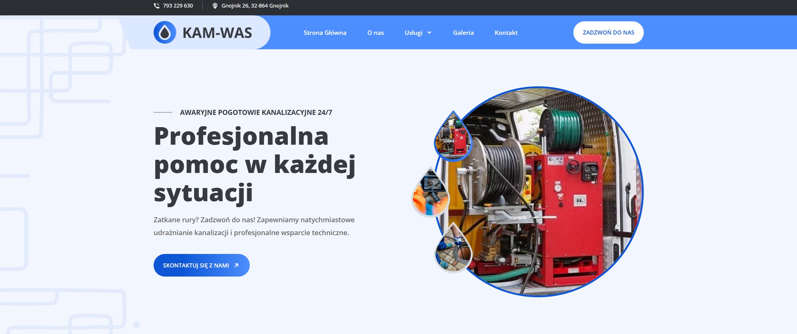 KAMWAS zapewnia szybką reakcję, solidne wykonanie i wsparcie w każdej kryzysowej sytuacji. Ze względu na charakter usług firma potrzebuje dobrej widoczności w internecie, aby klienci mogli łatwo i szybko znaleźć pomoc wtedy, gdy jest najbardziej potrzebna.
